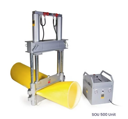 The SOU500 is used to limit the flow in PE pipe. Different diameters can be accommodated by using the appropriate pipe stop setting to ensure the optimum squeeze gap.