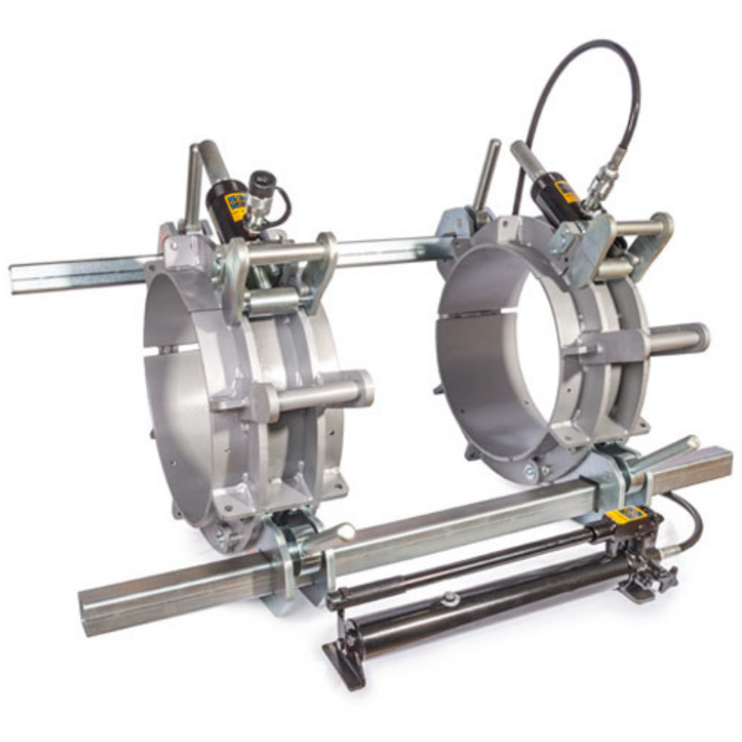 Hydraulically powered re-rounding and positioning units for supporting and restraining large diameter pipes and couplers throughout the electrofusion jointing process.