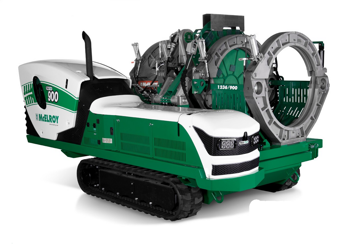 The McElroy TracStar® 900 Series 2 Automatic is a self-contained, self-propelled, all-terrain fusion machine with an on-board generator for powering the heater. It is hydraulically powered to assist all fusion functions, including the operation of the jaws, pipe lifts, heater, and facer. The machine is capable of fusing 340mm to 900mm (12” IPS to 36” OD) thermoplastic pipe in accordance with many international fusion standards.