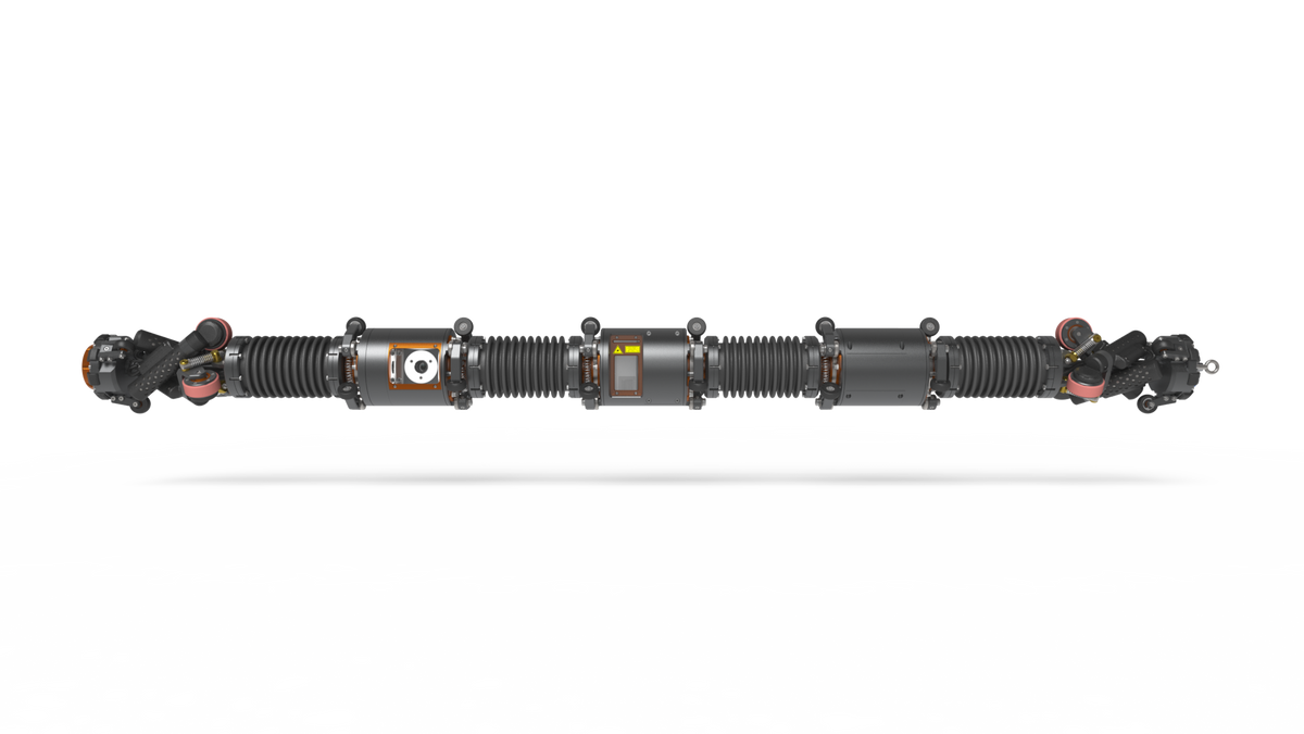 Built-in compliant mechanisms adapts to variations in pipe shape and size whilst remaining centred in the pipe in all orientations