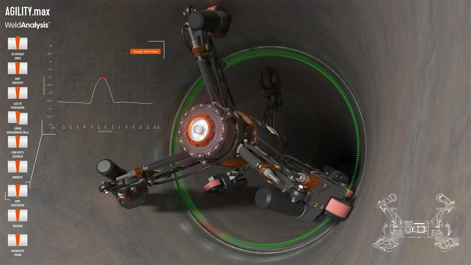 The OMS AGILITY.max is a powerful high-speed wheeled robot that combines with our award-winning inspection system and sophisticated software to provide top-quality information on the internal condition of pipes. Equipped with ultra HD cameras and state-of-the-art lasers, this flexible crawler can be adapted to carry other instruments and integrated with client or third-party systems. The AGILITY.max has recently been used on a major project in the Middle East where it was deployed to inspect 10”, 24” and 32” topsides with 1.5D elbows and vertical sections. Our team is always available to discuss how OMS robotics could assist with your project.
