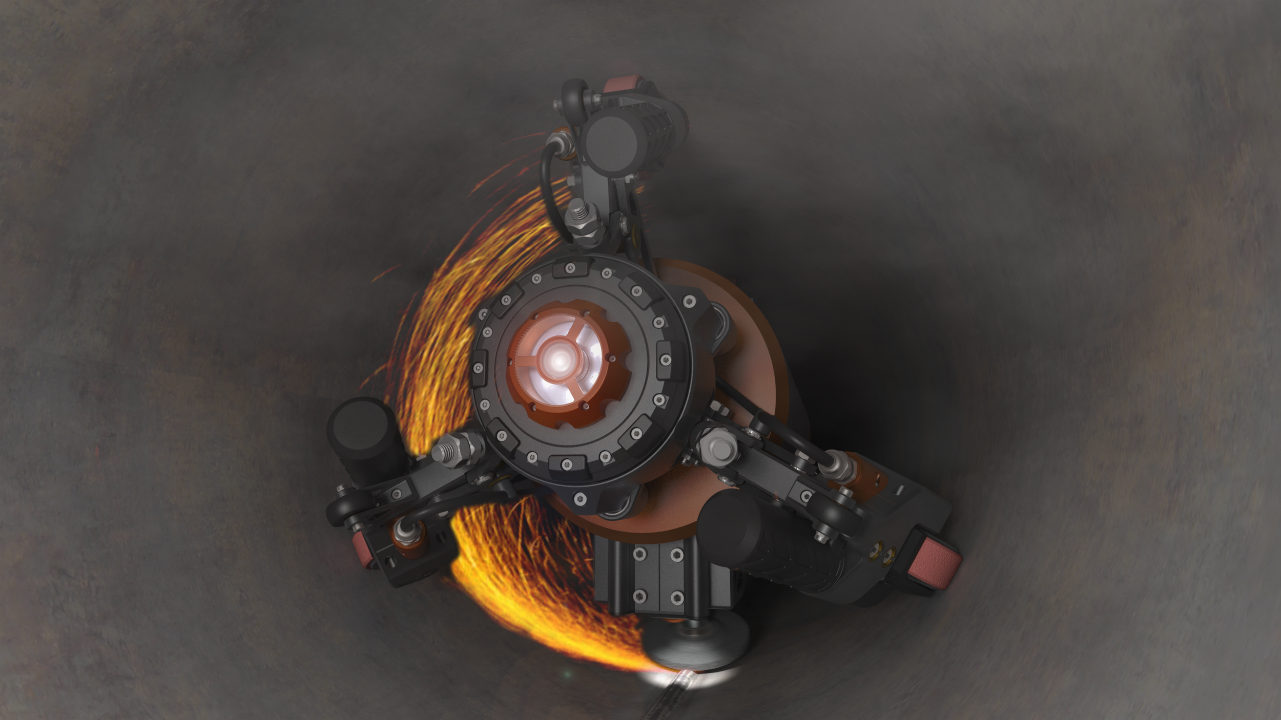 A modular addition to our award-winning AUGA.node weld inspection system, SmartGrind uses a mounted flap disc to grind and shape welds, strengthening surfaces, improving coatability and ensuring they meet project specifications. SmartGrind is already in use in client projects, currently capable of travelling around 100m from point of entry and able to navigate some pipeline bends. Our aim is that the system will shortly be able to access every location that our AGILITY range crawlers can reach.