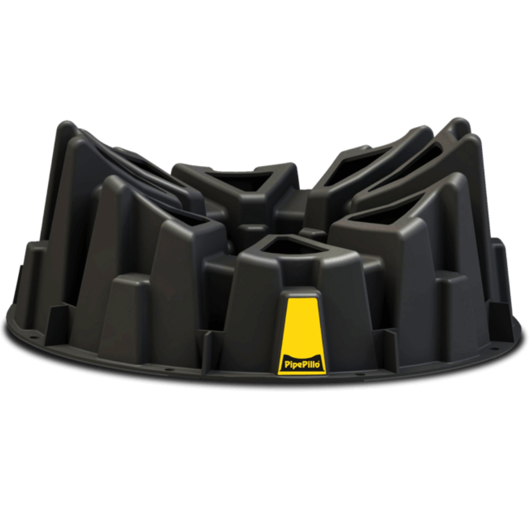 PipePillo® structured pipeline supports are manufactured from high strength polypropylene resins which are environmentally inert yet softer than pipeline coatings. In addition, their 90 degrees of support limit ovality and their many cavities support cathodic protection systems.