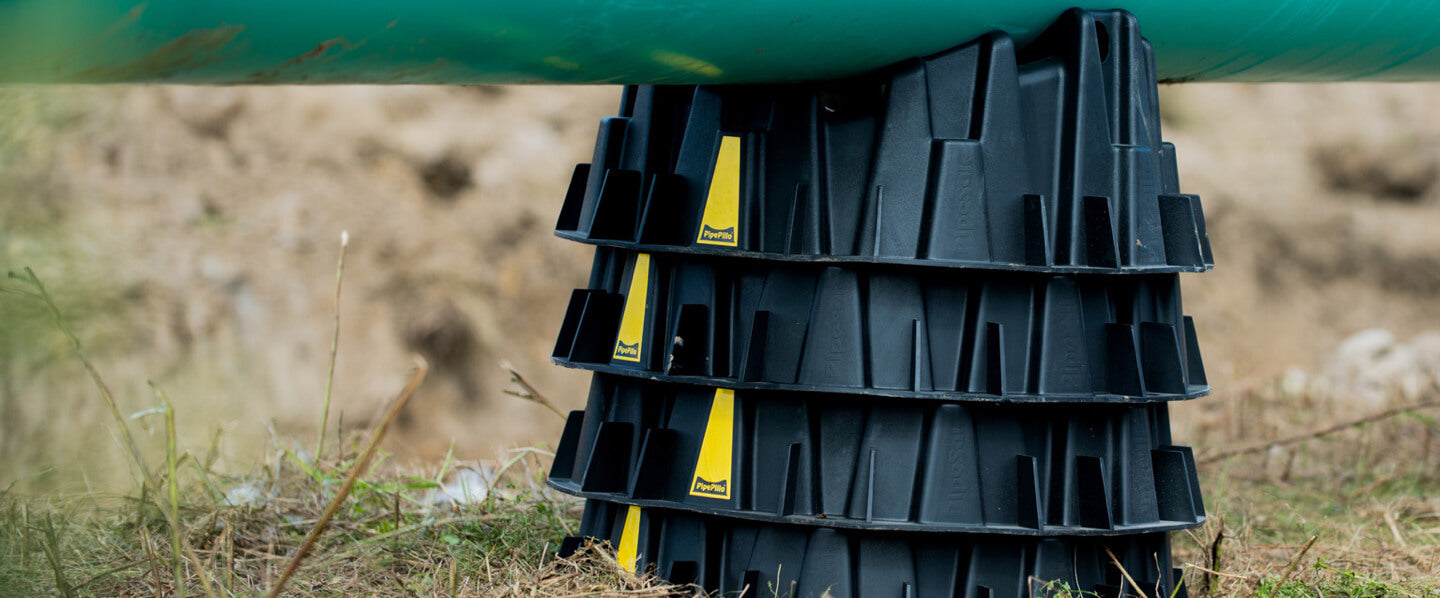 PipePillo® structured pipeline supports were designed for use both in and out of the trench. Outside the trench, PipePillo® pipeline supports are well-suited for use stringing and welding as single or multi-stacked supports. PipePillo® structured pipeline supports are lightweight and can be moved and stacked by a single worker. Reuse PipePillo® stackable pipeline supports on your next project or easily place in the trench for permanent pipeline support.