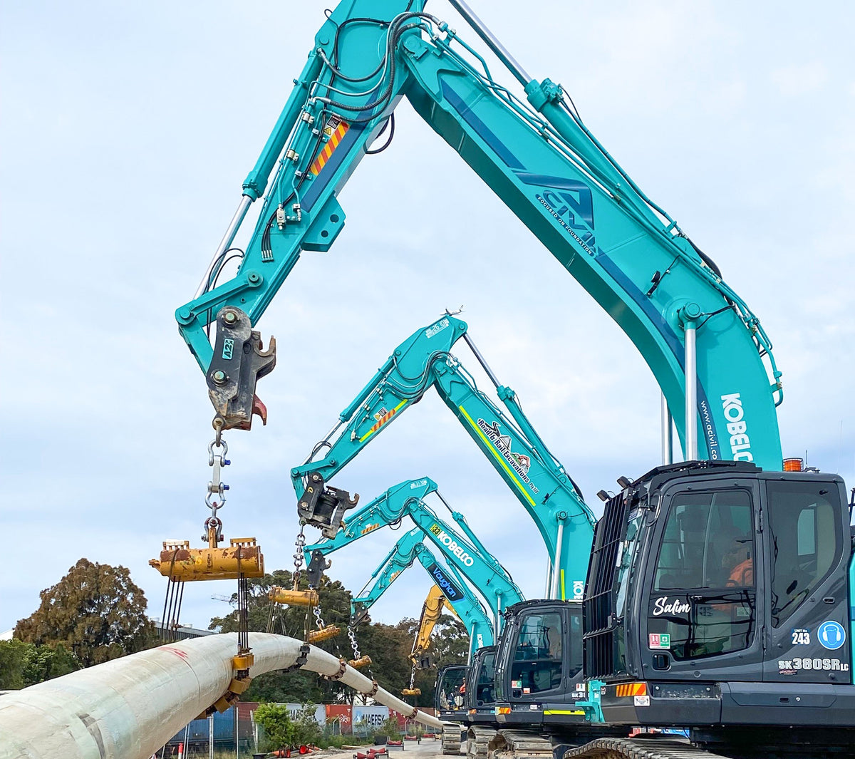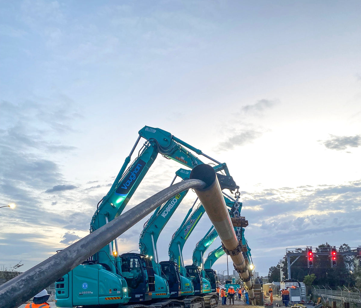 For many lifting operations on pipeline projects, belts, slings, ropes/cables or chains are not the right lifting gear. For some special tasks, there are suitable special tools that are tailor-made for that purpose. Roller cradles or lowering-in cradles are a special pipe lifting equipment for pipeline construction. These are used to lower the finished pipeline into the pipe trench using side boom crawlers. To do this, the crawlers drive as a group in a steady forwards movement. The rollers on the roller cradles are specially shaped and coated with special plastic to prevent any damage to the pipe insulation. The respective roller cradles can be used with several pipe sizes.