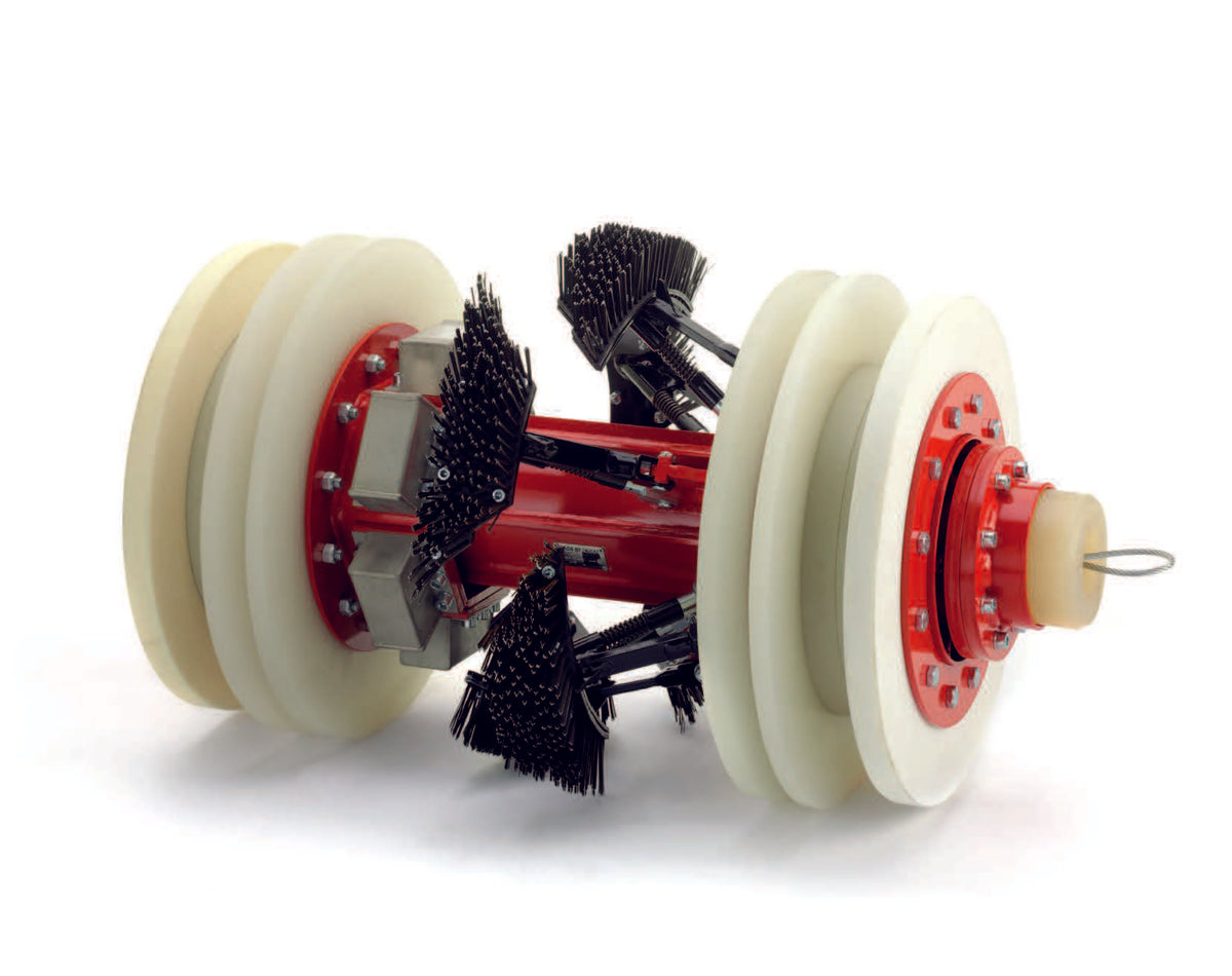 Brush Cleaning - used during pre-commission and on-stream cleaning where rust, mill scale, sand, wax, organic growth, mud, oxides, and other foreign matter exist. Sizes range from 2 through 48 , with brush configurations including wire wheel, split-ring, wrap-around, and spring-loaded.